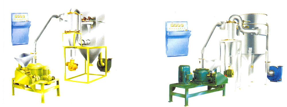 ※ Model WFJ series fine grinder or Model CWFJ series super fine grinder consists of there parts i.e. main machine, auxiliary machine and electric control. Its principle in using air to chose and no sieve or screen. Being installed grading mechanism inside the machine, the crushing and grading can be finished at the same time. When use negative pressure to transport in the operation of crushing, the heat producted from the chamber will be removed continuously. Therefore it can also be suitable for crushing thermal sensitive raw materials. The scope of application of machine is wide. Its productive process is continuous and its size of granule can be adjusted. It can crush and grade many raw materials such as chemicals, foodstuff, medicines, cosmetic, dyestuff, resin, shell materials and so on.